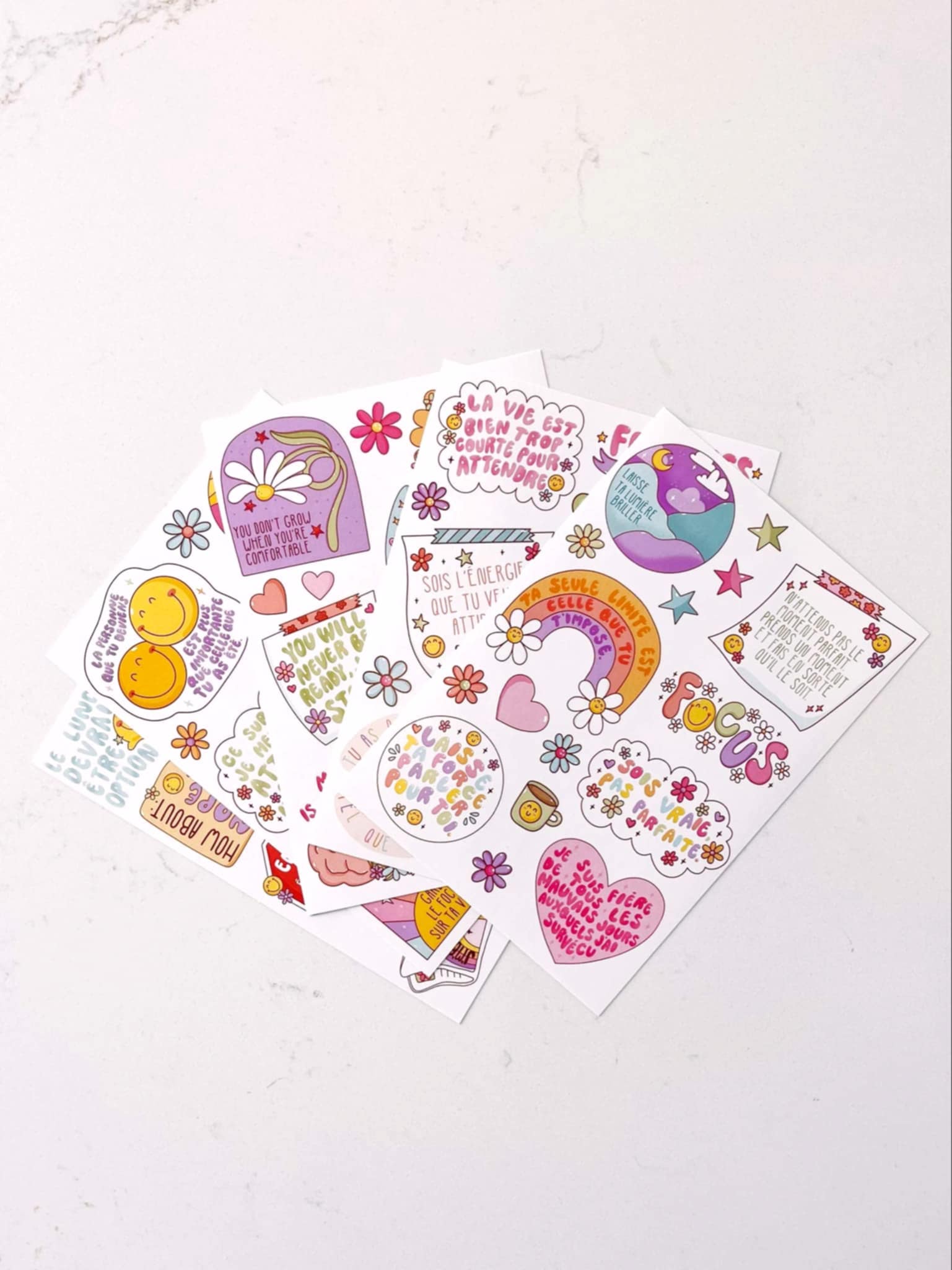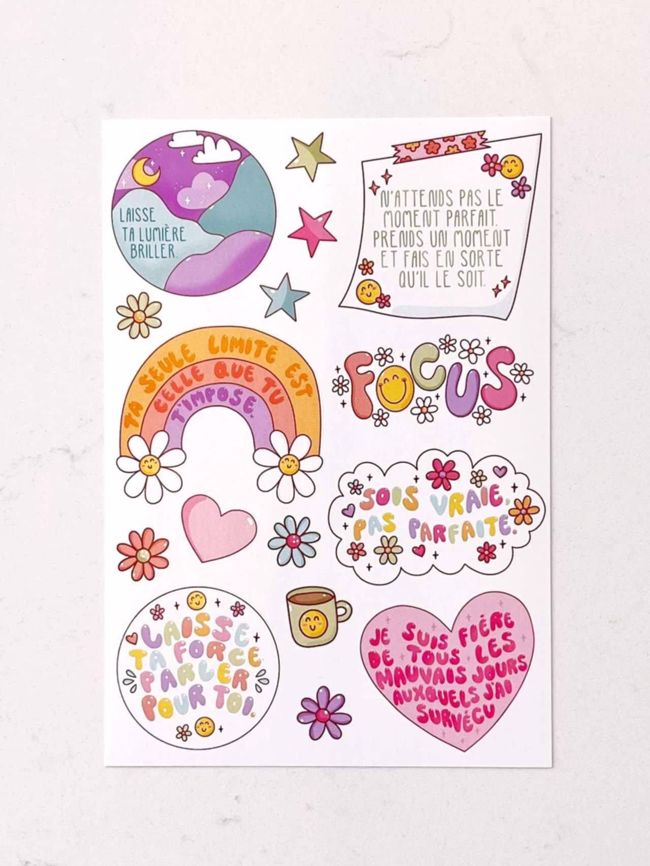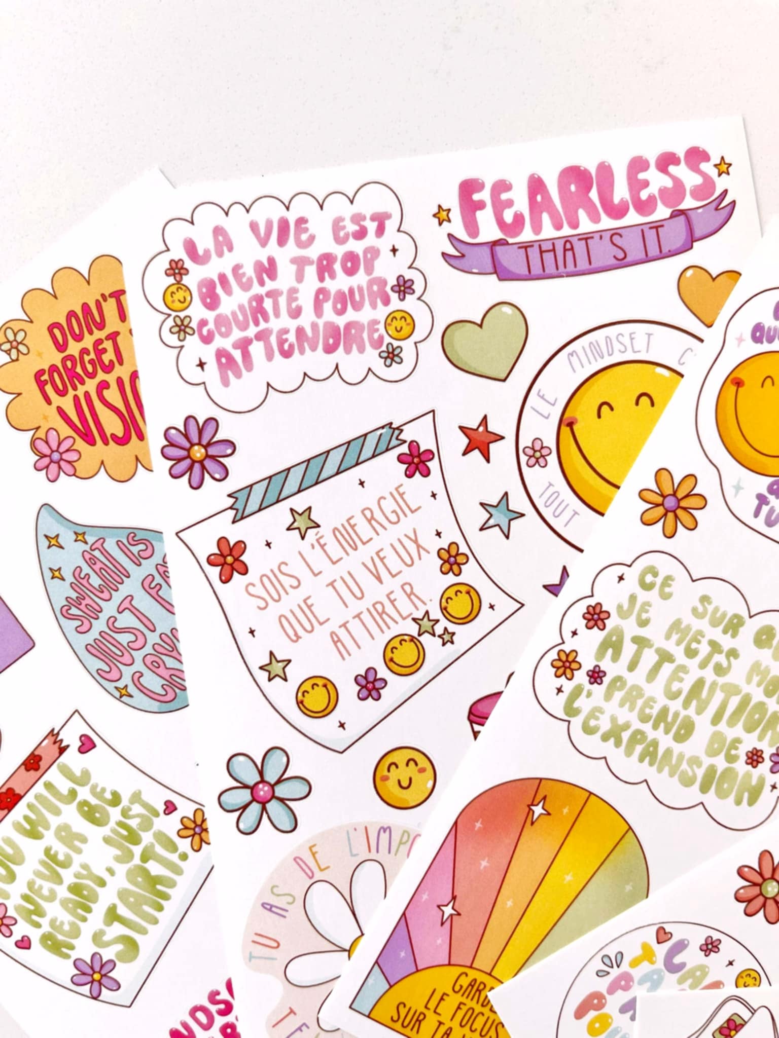 Cette collection met en valeur des phrases inspirantes et des mots doux, parfaits pour ajouter une touche de motivation et de couleur à ton quotidien.