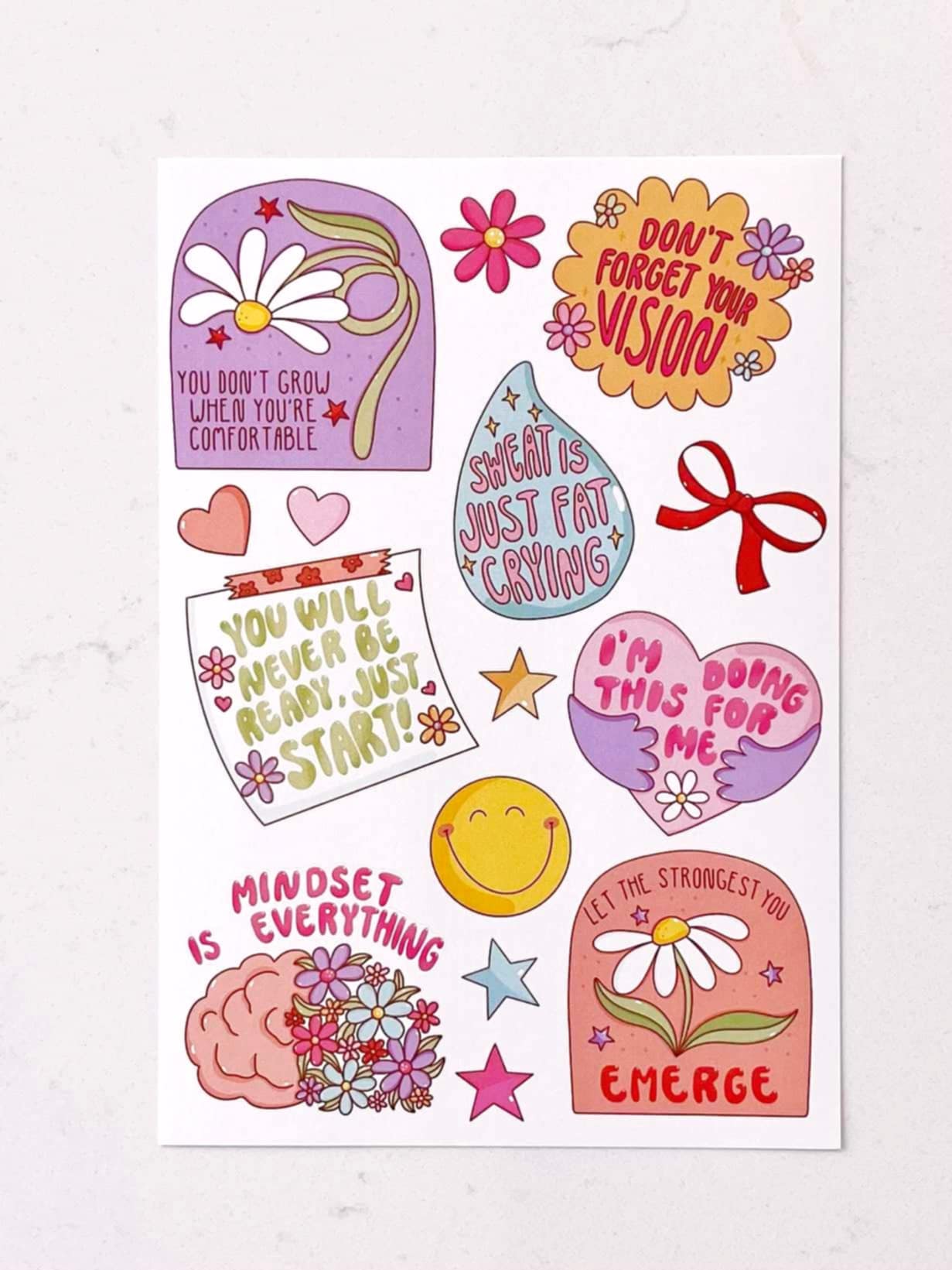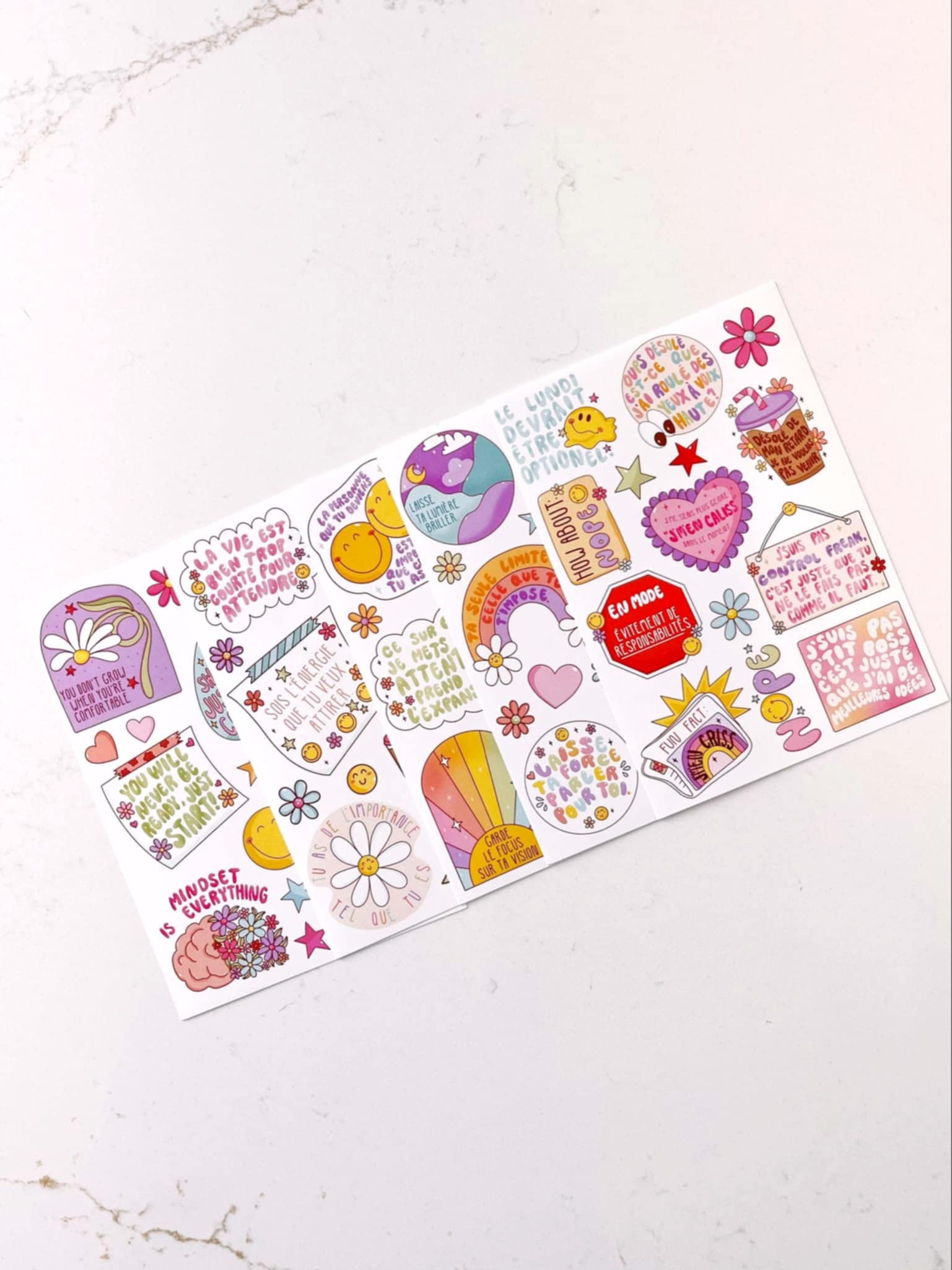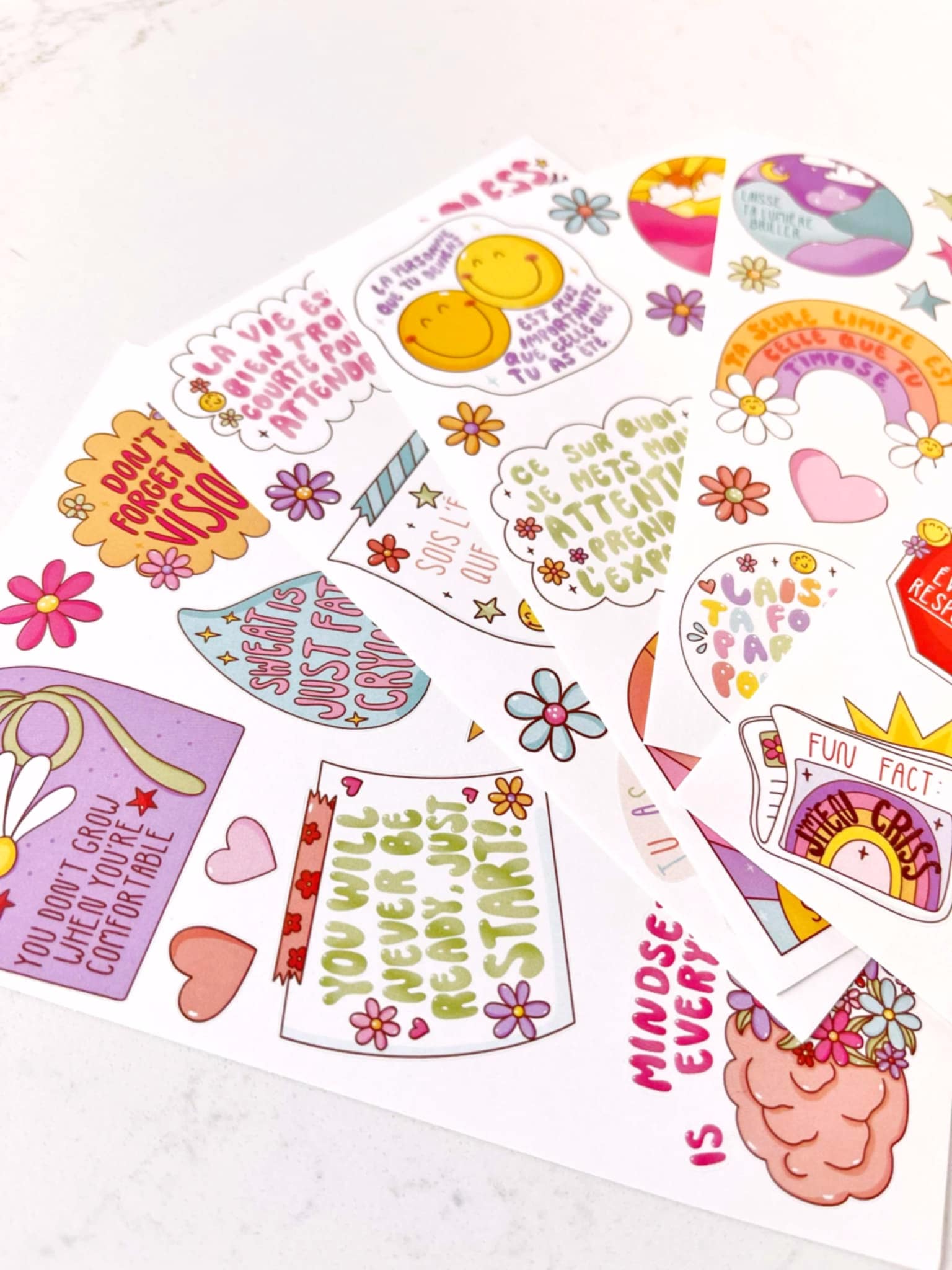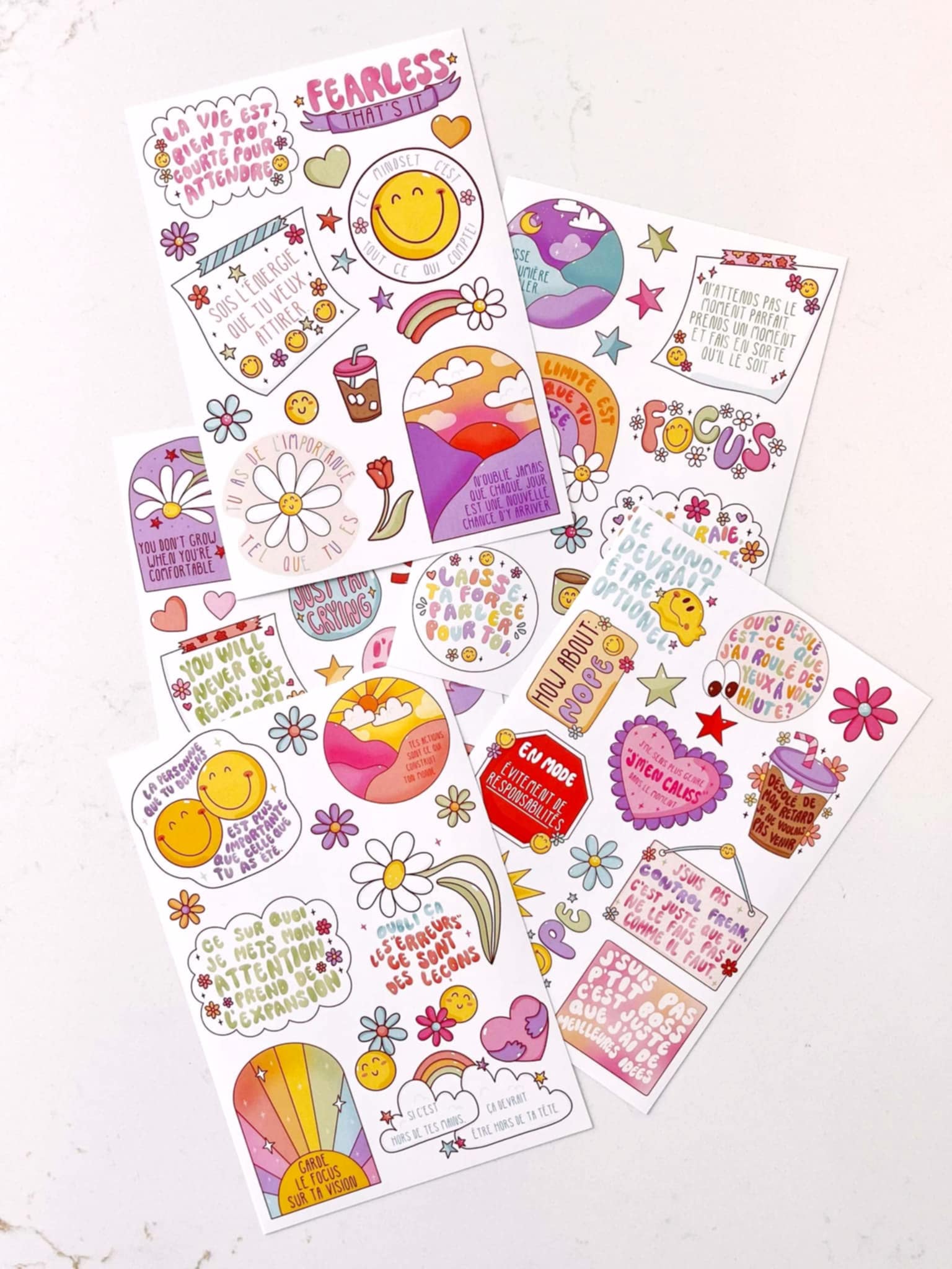 Cette collection met en valeur des phrases inspirantes et des mots doux, parfaits pour ajouter une touche de motivation et de couleur à ton quotidien.