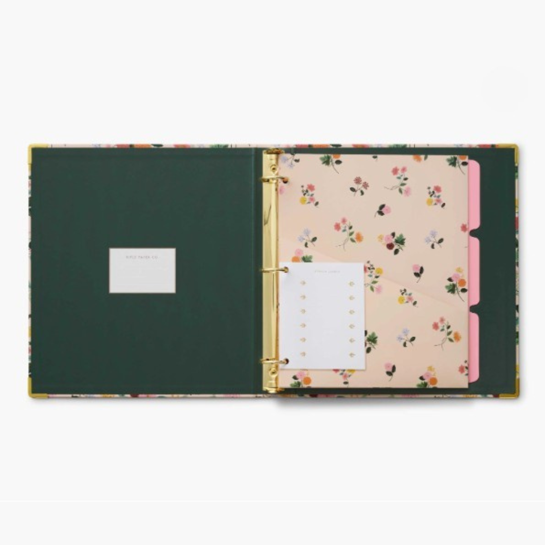 À l’intérieur, tu trouveras une pochette double face, trois séparateurs à onglets et des étiquettes adhésives pour classer tous tes documents importants.