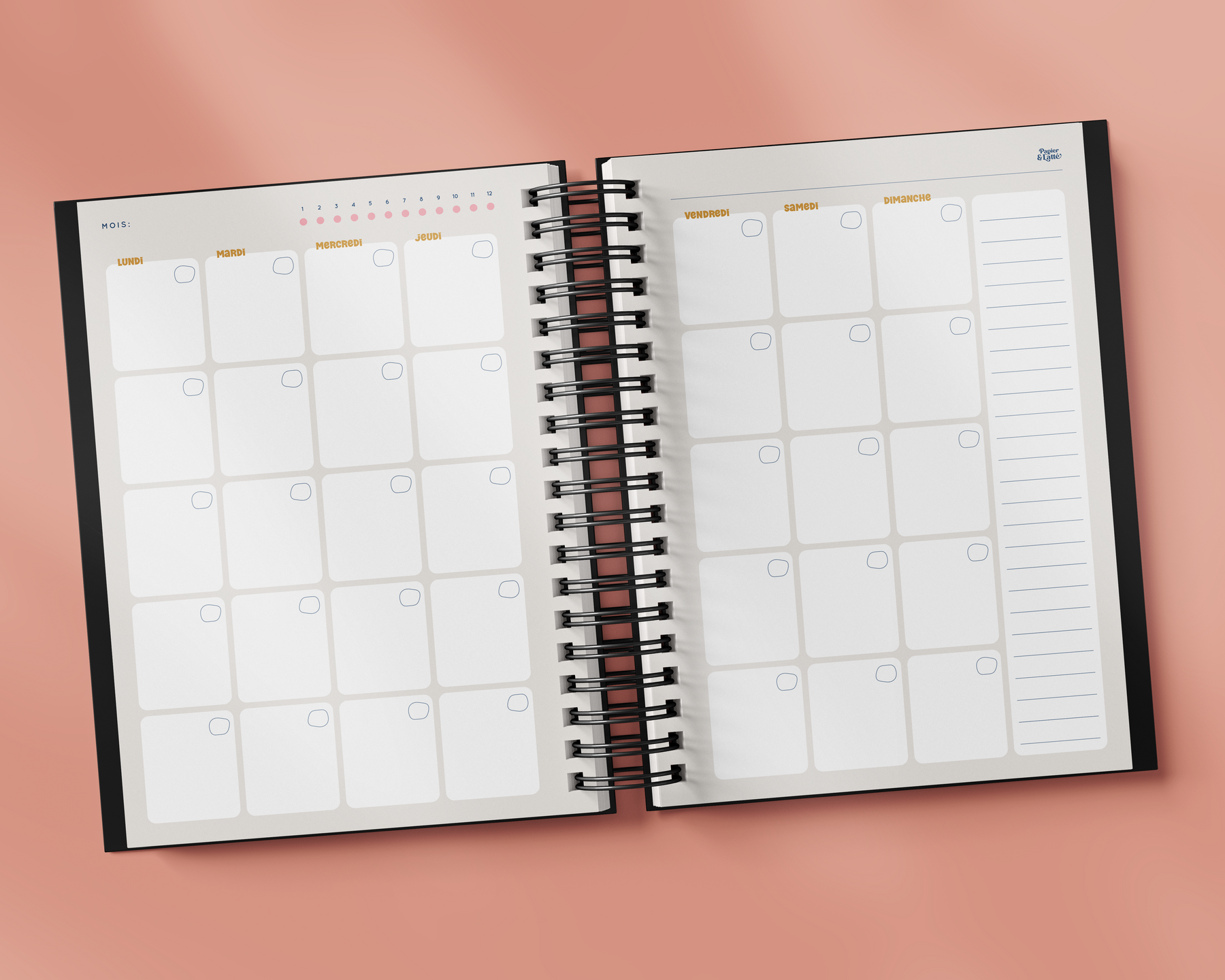 - Aperçu mensuel sur 2 pages comprenant :