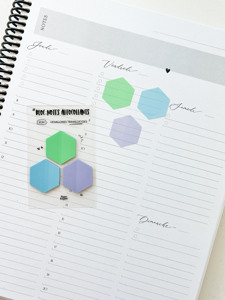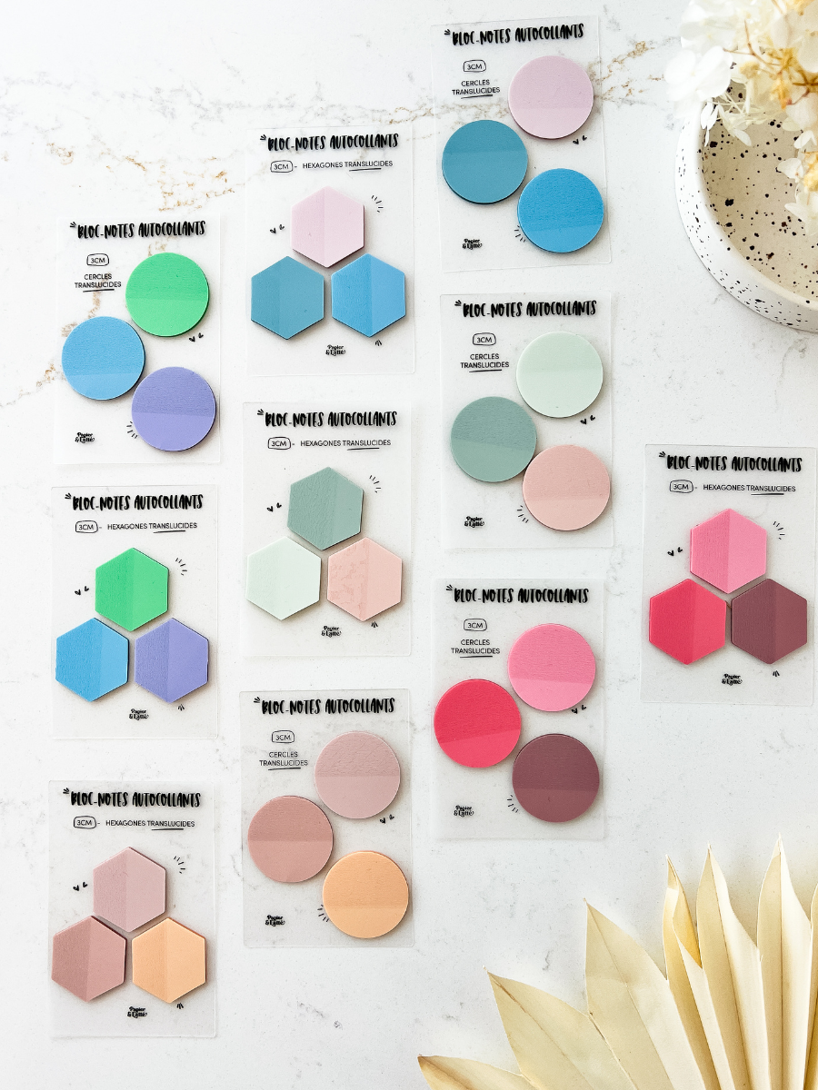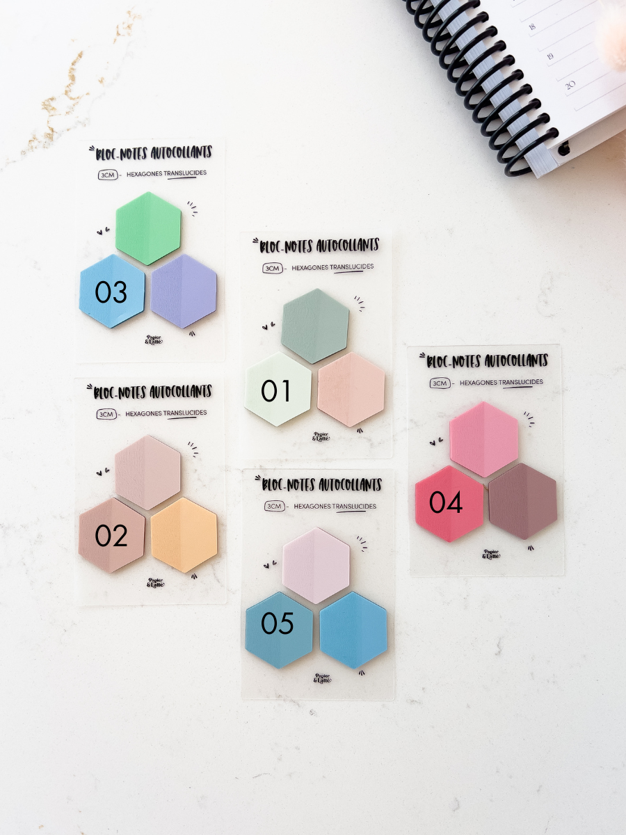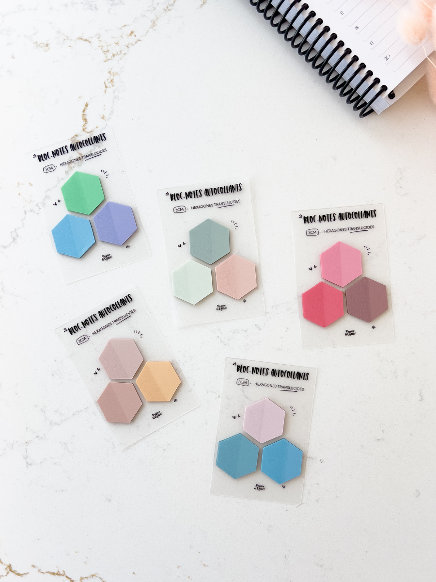 Trio d'hexagones 3 cm - Bloc-notes autocollants translucides