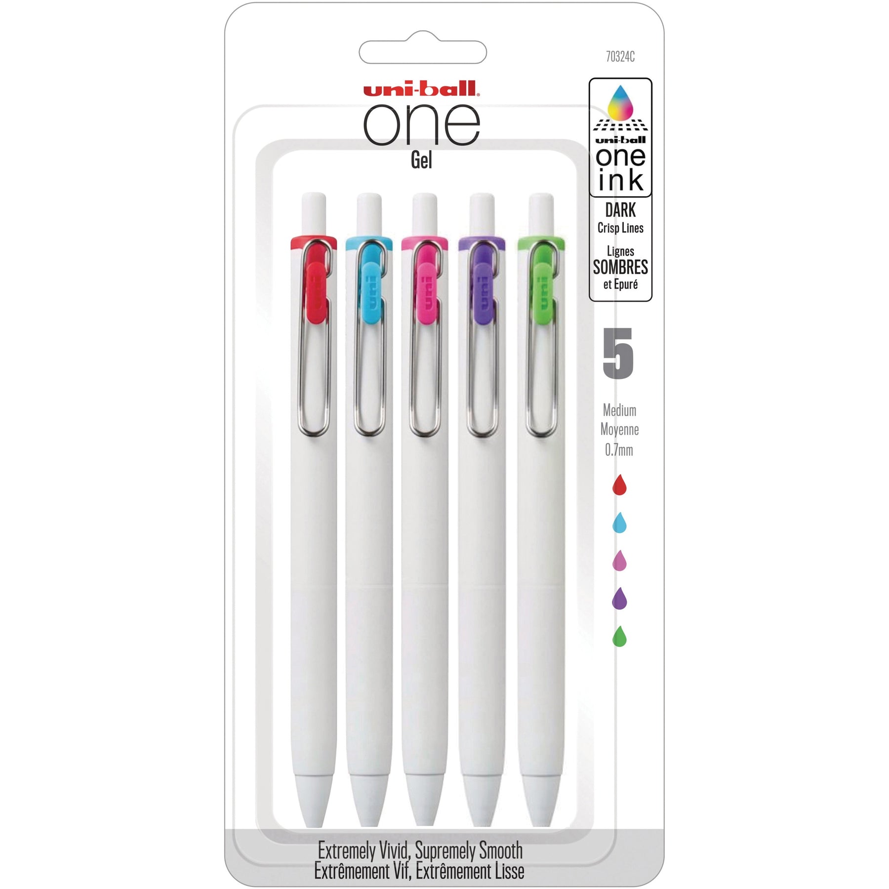 Uni-ball One - stylo gel rétractable - Couleurs assorties