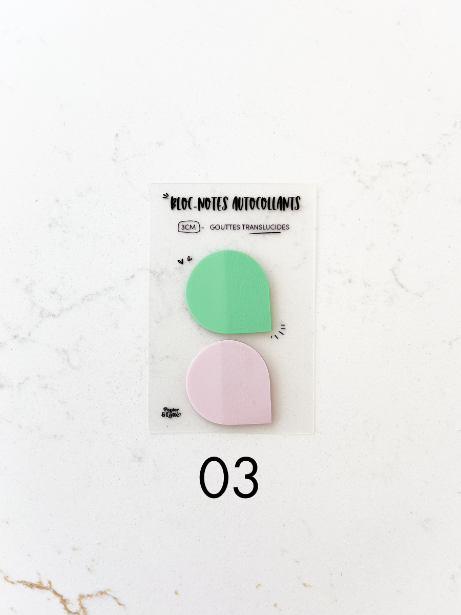 Duo de gouttes 3 cm - Bloc-notes autocollants translucides