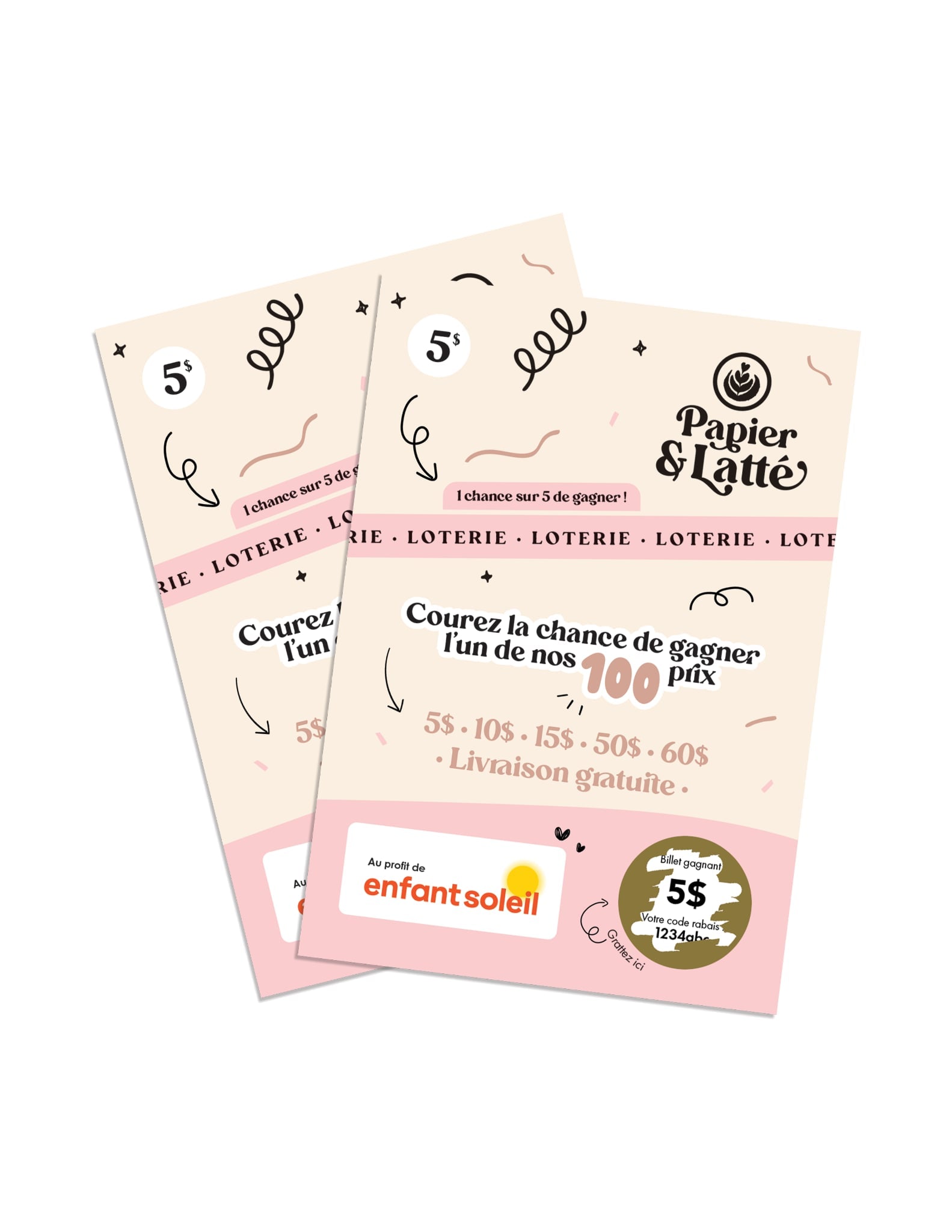 Ce produit unique a été créé avec cœur pour soutenir une cause qui nous touche profondément. En te procurant une carte surprise, tu contribues directement à amasser des fonds pour Enfant Soleil. Tous les montants récoltés leur seront entièrement remis.